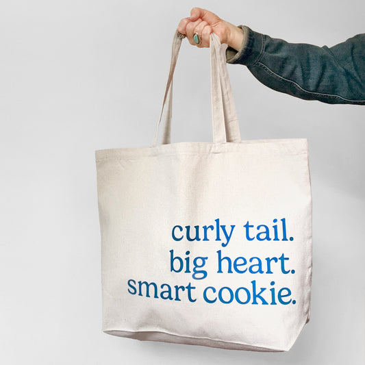 Curly Tail. Big Heart. Smart Cookie. Tote Bag | Eco-Friendly Canvas Dog Lover Bag