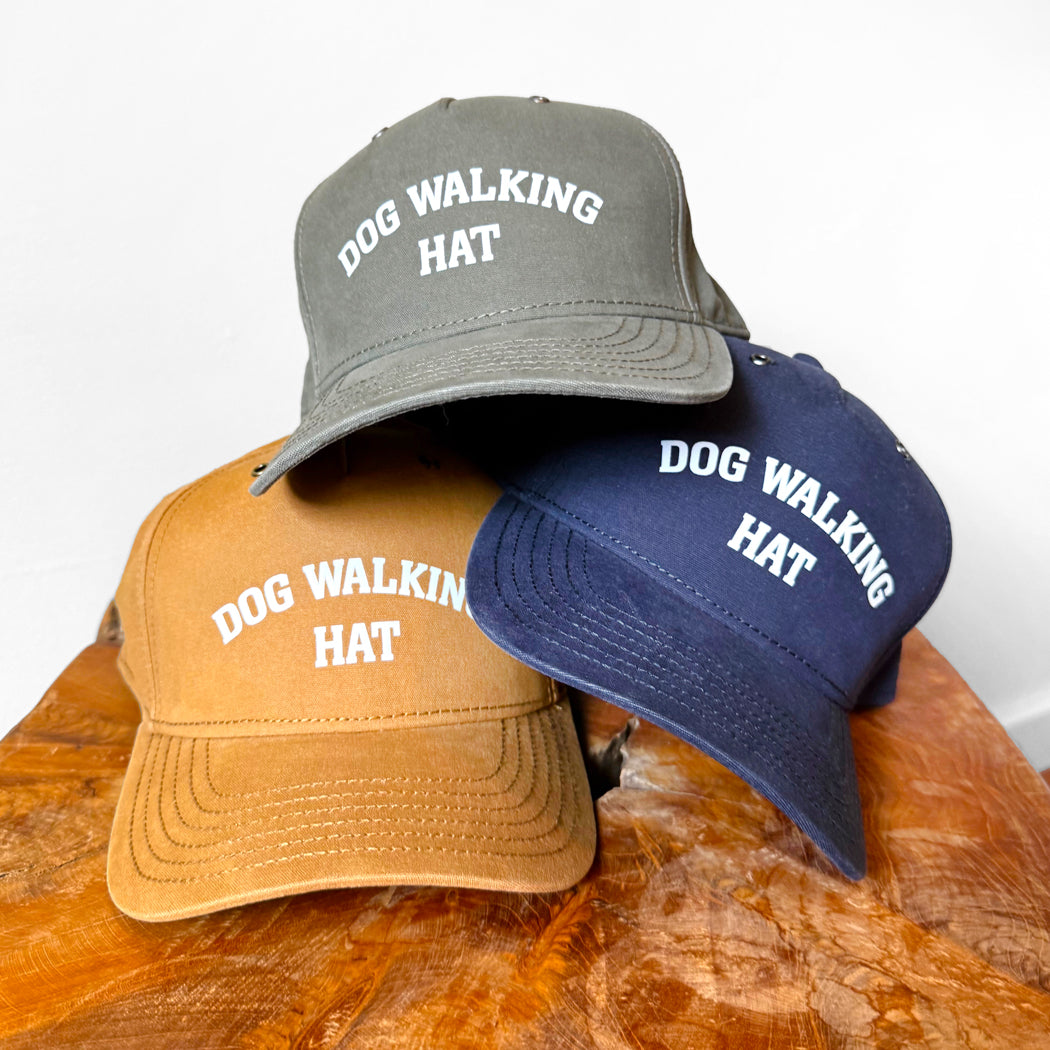 Available in Olive Green, Navy, and Wheat, these versatile, earthy shades pair effortlessly with your go-to dog-walking gear and everyday outfits. The durable brushed cotton canvas, pre-curved bill, and snapback closure offer comfort, breathability, and a custom fit.