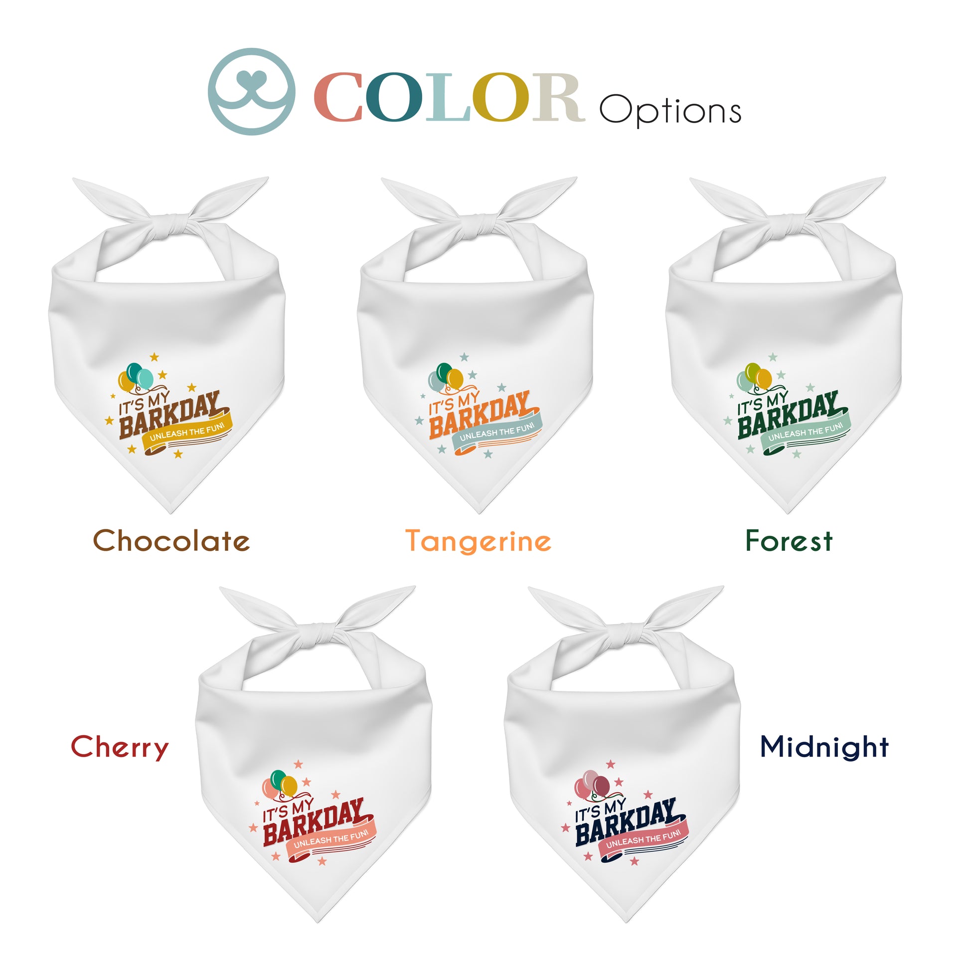 Each bandana is made from soft, high-quality cotton for a comfortable fit and easy tie-on style. Available in five cheerful color palettes — Chocolate, Tangerine, Forest, Cherry, and Midnight — so every dog can party in their favorite hue.